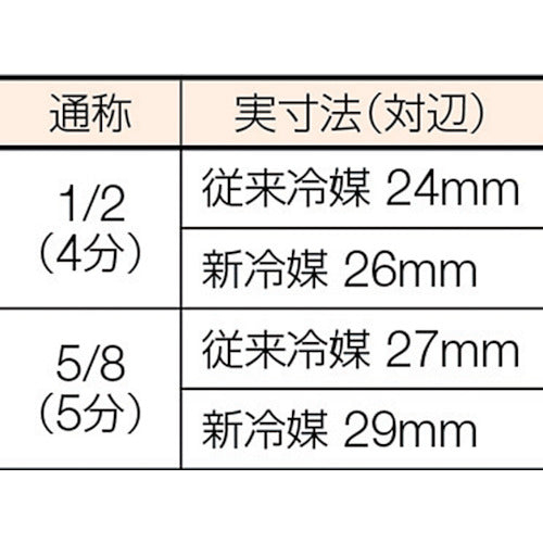 Catalog number: ATQ-380 Features: ●When tightened to the specified torque value, a click sound will be heard and the neck will break. Applications: ●Prevents refrigerant leakage due to insufficient tightening of the flare nut, and damage to the copper pipe flare due to overtightening. Specifications: ●Total length (mm): 260 ●Flare nut size: 3/8 inch ●Two-sided width dimension (mm): 22 ●Set torque value (N・m): 38 ●Load direction: Right