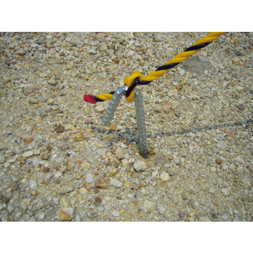 Catalog number: 10168019 Features: ●Irregular type (J-shaped head) improves pulling strength. ●Can be used in various situations such as construction sites, parking lots, and gardening. Applications: ●For fixing ropes, wires, etc. ●For installing anti-intrusion ropes. Specifications: ●Diameter (mm): 6 ●Folded length (mm): 40-50 ●Total length (mm): 150 Material/Finish: ●Steel ●Surface treatment: Unichrome