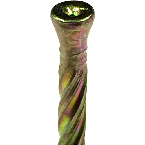 Catalogue number: 10183087 Features: ●The body is screwed, so it is hard to come loose and is plated to prevent rust. ●The head has a cup shape as a punch hole. ●It is a small pack that is easy to purchase. Applications: ●For applications that require strong holding power. ●For fastening flooring materials. Specifications: ●Dimensions (mm) d: 2.1 ●Total length (mm): 38 ●Number (#): 14 ●Head diameter (mm): 3.5 ●Body shape: Screw ●Color: Gold ●Compatible wooden nails: Flooring materials ●Surface treatment: Chromate plating ●Number of pieces per pack: 24 Material/Finish: ●Steel ●Surface treatment: Chromate