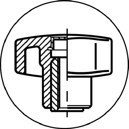 Catalog number: STK60N Features: ● Pentagonal type knob that fits hand operation. Specifications: ● Outer diameter (mm): 63 ● Knob height (mm): 37 ● Thread dimensions: M12 x 1.75 ● Thread depth (mm): 22 ● Heat resistance temperature (℃): 90℃ ● Female thread type Material/Finish: ● Knob: Polypropylene (PP) ● Female thread: Brass