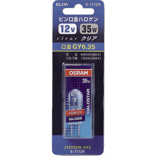 ELPA Bulb (Halogen Bulb) Pin Base Halogen Clear J12V35WAXS Brightness 580lm G-1172H 1 piece