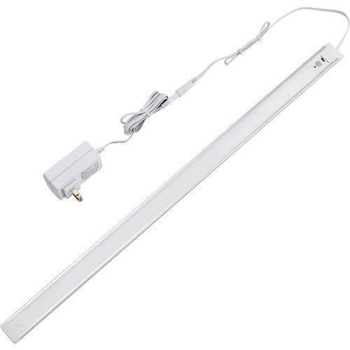 Catalog number: ALT-2060PIR-D Features: ● Automatically turns on when it detects people in a dark place and automatically turns off after about 15 seconds. ● Can be connected to one optional connecting handset (61 cm). ● Angle can be adjusted with the included magnetic holder. ● Uses a light guide plate, so it is slim but bright and even. ● Thin and slim, so it can be easily installed. Specifications: ● Brightness (lm): 1100 ● Light source color: Daylight ● Width (mm): 32 ● Length (mm): 616 ● Height (mm): 9 ● Power consumption (W): 14.5 ● Voltage (V): AC100V (50/60Hz) ● Standard power consumption fee: 0.39 yen/h ● Sensor lighting retention time: Approximately 15 seconds ● Illumination at the start of lighting: Approximately 10lx or less ● Operating temperature range: 10 to 40°C ● Body cord length: Approximately 0.5m ● Thickness: 9 (mm) (maximum value) ● Cord length (m): Approximately 1.8m ● Voltage: AC100V (50/60Hz) ● Dedicated AC adapter: Input AC100-240V 50/60Hz 1.0A Output DC24V 1.2A Cord length Approximately 1.8m●Color rendering: Ra80●Rated power consumption when connected at maximum (W): (1 61cm connecting handset connected): 27.5 (strong) Material/Finish: ●31cm connecting handset cannot be used. Set contents/Accessories:●1 AC adapter●2 magnetic holders●2 large wood screws (φ2.8×19mm) 2 small wood screws (φ2.8×9.5mm)●2 sleeves (φ6×28mm)●2 double-sided tapes (7.5cm)●3 cord stickers●1 end cap●1 connecting cord (approx. 25cm)●1 straight connection connector