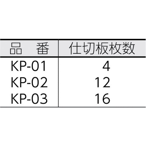Catalog number: KP-03 Features: ●Lightweight and durable. ●The case is translucent, so you can check what's inside. ●The dividers can be moved freely to suit the size of the items you want to store. ●The dividers in the internal dimensions are fixed, and you can use the dividers provided separately to divide narrow spaces. Uses: ●Ideal for organizing, storing, and transporting electronic parts and small components. Specifications: ●Color: Clear ●External dimensions (mm) Width: 255 ●External dimensions (mm) Depth: 190 ●External dimensions (mm) Height: 40 ●Effective internal dimensions (mm) Width: 245 ●Effective internal dimensions (mm) Depth: 165 ●Effective internal dimensions (mm) Height: 35 ●Dividers (pcs): 16 ●Type: Fixed/movable dividers ●Maximum number of frames: 20 ●Fixed/movable divider type Material/Finish: ●Polypropylene (PP)