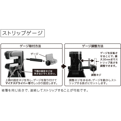 Catalogue number: PAW-32 Features: ● A wire stripper that can precisely strip wires with one action. ● The highly precisely machined stripping blade allows for highly accurate stripping without damaging the core wire. ● Strips easily by simply gripping the wire, reducing the burden on the user during use. ● Comes with a stripping gauge so the length of the insulation to be stripped can be set. Applications: ● For stripping insulated wires. Specifications: ● Total length (mm): 165 ● Suitable wires (AWG): 26, 24, 22, 20, 18, 16, 14 Material/Finish: ● Steel