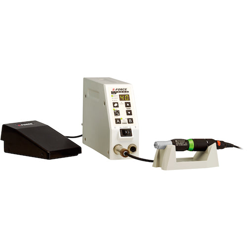 Catalogue number: DFS01 Features: ●Use by connecting to a controller. ●Three types of operation can be set by switching the foot switch mode on the controller. ●It rotates at the set speed while the foot switch is held down (momentary mode). ●Press the foot switch once to turn it on and rotate at the set speed, and press it again to turn it off (alternate mode). ●The rotation speed changes depending on how hard the foot switch is pressed (analog mode). Applications: ●Foot switch for the precision electric micro grinder E-FORCE. ●The motor power can be turned on/off and the motor rotation speed can be increased/decreased with the foot switch. Specifications: ●Total length (mm): 150 ●Power cord length (m): 2 ●Width (mm): 98 ●Depth (mm): 150 ●Height (mm): 66 ●Cord length: 2m