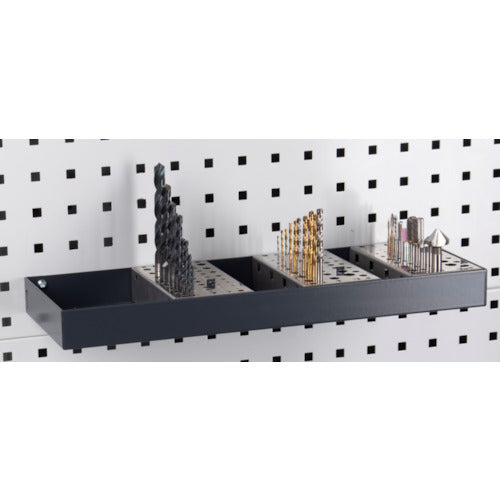 Catalog number: FBLIT0260ZZ Features: ● Ideal for organizing drills by putting them in a tool tray. Specifications: ● Depth (mm): 84 ● Height (mm): 39 ● Width (mm): 155 ● Allowable load (kg): 3 Material/Finish: ● Stainless steel Set contents/Accessories: ● 6 mounting mounts, 4 mounting screws