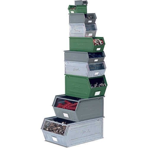 Catalogue number: FLS41000002 Features: ●The opening is designed to make it easy to take out parts. ●Made of steel and extremely sturdy. ●Various sizes can be stacked. ●Equipped with a crossbar, making it easy to carry even heavy items. Specifications: ●Capacity (L): 12.5 ●Color: Green ●External dimensions (mm) width: 200 ●External dimensions (mm) depth: 350 ●External dimensions (mm) height: 200 ●Effective internal dimensions (mm) width: 185 ●Effective internal dimensions (mm) depth: 300 ●Effective internal dimensions (mm) height: 184 ●Maximum load capacity (kg/unit): 80 ●Label size (mm): 80 x 48 ●Label size (mm): 80 x 48 Material/Finish: ●Steel