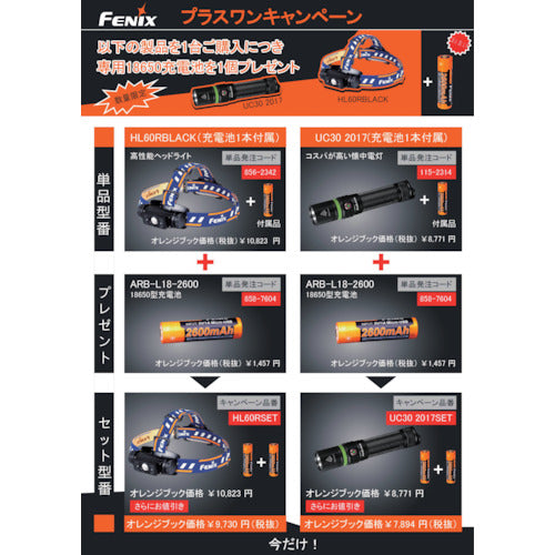 FENIX Rechargeable LED Headlight Battery Plus One Set HL60R HL60RSET 1 S
