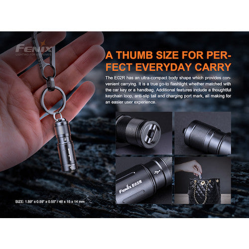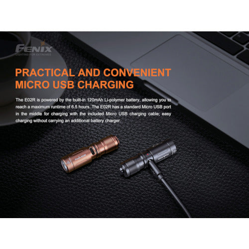 Catalog number: E02RBLUE Features: ● Maximum brightness is 200 lumens. ● The farthest range is 49 meters. ● Available in 3 colors. ● Comes with a rotary switch. ● Micro USB charging Specifications: ● Brightness (lm): 200 ● Color: Blue ● Outer diameter (mm): 15 ● Total length (mm): 48 ● Power supply (V): USB charging type ● Maximum lighting time (h): Approximately 6.5 hours ● Protection class: IP68 ● Width (mm): 48 ● Depth (mm): 15 ● Height (mm): 14 ● Irradiation distance (m): 49 ● Dedicated rechargeable battery (built-in) ● Maximum lighting time: Approximately 6.5 hours (at 15lm) ● Protection class: IP68 ● Maximum irradiation distance: 49m (at 200lm) Material/Finish: ● 6061-T6 (aluminum alloy) Set contents/Accessories: ● USB charging cable ● Key ring ● Spare O-ring Caution: ● Bulb cannot be replaced. ● Never look directly at the LED.