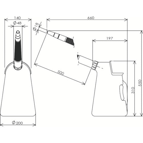 Catalog number: 3250 Features: ●Easy-to-grip handle. ●Even if you fill it up to the maximum mark, there is still enough space to the oil inlet, so it is safe and unlikely to spill. ●Convenient for transferring liquids. ●Nozzle allows for well-balanced injection. Uses: ●Transferring oil and other liquids. Specifications: ●Capacity (ml): 5000 ●Scale interval (ml): 500 ●Diameter (mm): 200 ●Height (mm): 550 ●Nozzle length (mm): 500 ●Capacity (L): 5 ●Depth (mm): 430 ●Width (mm): 200 ●Long nozzle type Material/Finish: ●Body and nozzle: Polyethylene (PE) Caution: ●Do not store in direct sunlight for long periods of time.