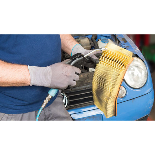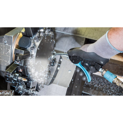 Catalog number: 9040P-4 Features: ●Widely usable for blowing away chips, dust, etc. ●The main body handle is made of plastic, and the nozzle is made of metal. ●The vent nozzle naturally points downward for good workability. ●The venturi nozzle doubles the air volume. ●The nozzle tip is a no-block type. Applications: ●For cleaning automobiles, industrial machinery, woodworking machinery, etc. Specifications: ●Product name: Air blow gun 100mm vent nozzle Venturi nozzle ●Thickness (plate) (mm): 22 ●Nozzle length (mm): 100 ●Total length (mm): 265 ●Mounting port: G1/4 ●Nozzle diameter (mm): 8 ●Air mounting port: G1/4 ●Nozzle type: Venturi nozzle ●Air consumption ([[M3]]/min): 0.235 ●Maximum operating pressure: 0.6Mpa ●100mm vent nozzle ●Venturi nozzle ●Maximum pressure resistance: 16bar ●Sound pressure: 83.7db Material/Finish: ●Body, lever: Plastic ●Nozzle, pipe: Metal ●O-ring: Nitrile rubber Set contents/Accessories: ●Japanese specification coupler: EA140DB-32