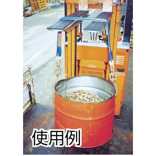 Catalogue number: DUS-1 Features: ● Non-slip, safer than wires and chains. ● Equipped with a J-hook with a swivel, it is less likely to twist. Applications: ● Lifting drums. Specifications: ● Basic load capacity (t): 1.6 ● Dimensions (mm) L: 1500 ● Dimensions (mm) E: 100 ● Dimensions (mm) B: 950 ● Dimensions (mm) W: 50 Caution: ● Drums without holes cannot be lifted.