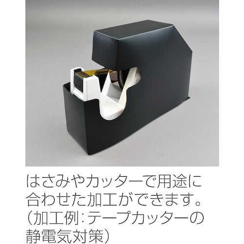 Catalog number: F-733 Features: ● Inexpensive, durable, long life Extremely light and easy to process Compared to conductive color mats, it is durable and has a long life, making it ideal for static electricity countermeasures on workbenches and shelves. ● Can also be used to protect work surfaces by laying it on top of conductive color mats. ● Can be easily processed with scissors or a cutter. Specifications: ● Color: Black ● Width (mm): 600 ● Length (mm): 1800 ● Thickness (mm): 0.5 ● Surface resistance value (Ω): Rp≦1×10^8Ω ● Gloss: None ● Length (m): 1.8 ● Quantity: 2 Material/Finish: ● PP Note: ● Earth wire is not included. ● Please purchase the dedicated earth terminal F-733-1.