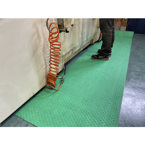 Catalog number: AR80G Features: ●Perforations are provided every 40 x 50 cm, so it can be cut without using a blade. (AR80G) ●The surface is hard, making it convenient for use in areas with a lot of traffic. ●The colored material is useful for separating work areas from aisles. ●The colored material contributes to the "visualization" of 5S, such as clearly indicating aisles and work areas. Uses: ●For oil and water. ●Ideal as a mat for aisles and around machines. Specifications: ●Oil absorption capacity (L/roll): 96 ●Width (mm): 800 ●Length (m): 30 ●Thickness (mm): 3 ●Color: Green ●Roll type Material/Finish: ●Polypropylene (PP) Caution: ●Store and dispose of the product according to the nature of the oil or liquid absorbed. When disposing of the product, follow local waste disposal regulations.