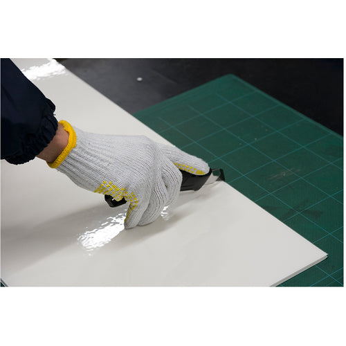 Catalog number: L-34A BK Features: ●Auto-lock. ●Cutter designed for easy grip. ●Elastomeric rubber and hold grip to keep your grip firmly in place. ●Safety rope attachment hole included. ●Sharp black blade for excellent cutting ability. Applications: ●For opening cardboard boxes, cutting plasterboard, etc. Specifications: ●Total length (mm): 165 ●Blade thickness (mm): 0.5 ●Compatible replacement blades: LB-10HT, LB-10H, LB-10BH, LB-50HT, LB-50H, LB-50BH ●Color: Black ●Type: Auto-lock ●Blade thickness: 0.5 mm Materials/Finish: ●Body: ABS resin ●Blade: Steel