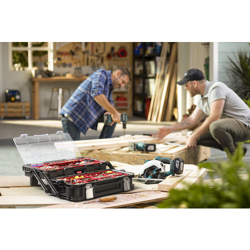 Catalogue number: 17203103 Features: ●Can be connected to a rolling system for use. ●Can also be used as a stand-alone item. Specifications: ●Color: Black ●External dimensions (mm) width: 565 ●External dimensions (mm) depth: 317 ●External dimensions (mm) height: 161 ●Effective internal dimensions (mm) width: 470 ●Effective internal dimensions (mm) depth: 240 ●Effective internal dimensions (mm) height: 90 ●Upper tool box ●22 trays included (4 large trays, 18 small trays) ●Effective internal dimensions of large tray: 235 x 80 x 91 mm ●Effective internal dimensions of small tray: 117 x 80 x 91 mm Material/Finish: ●Polypropylene (PP)