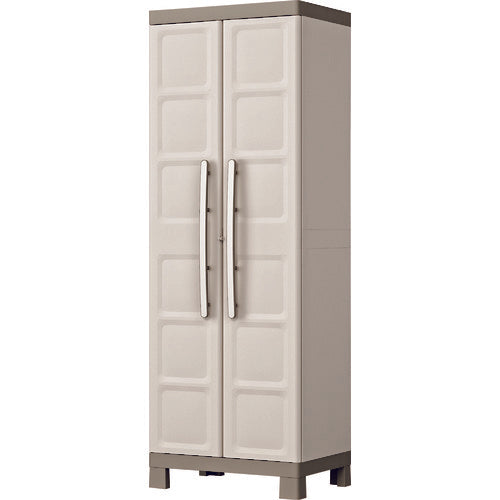 Catalogue number: 9710000031311 Features: ●Shelf position can be easily adjusted to suit the purpose. ●Easy to assemble and use. ●Estimated assembly time is approximately 15 minutes per two people. Specifications: ●Width (mm): 650 ●Depth (mm): 450 ●Height (mm): 1820 ●Color: Beige ●Floor area ([[m2]]): 0.29 ●Effective internal dimensions (mm) width: 565 ●Effective internal dimensions (mm) depth: 400 ●Effective internal dimensions (mm) height: 1635 ●Load capacity (kg): 45 ●Number of shelves (pcs): 1 large, 3 small ●For indoor use ●Shelf load capacity: 15kg/pc (large), 10kg/pc (small) Material/Finish: ●Polypropylene (PP)