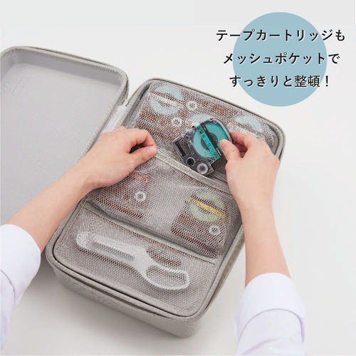 Catalog number: SR11B-GY Features: ● A lightweight and durable dedicated case that is perfect for storing the "Tepra" PRO main unit. ● Not only the "Tepra" main unit, but also the bulky tape cartridges, trimmers, instruction manuals and AC adapters can be stored together. ● The case is made of durable EVA semi-hard specifications, and protects the main unit from scratches and impacts. ● The calm color and simple design make it suitable for any occasion. ● * Please check the recommended storage models before purchasing. Specifications: ● External dimensions (W) (mm): Approximately 330 ● External dimensions (D) (mm): Approximately 131 ● External dimensions (H) (mm): Approximately 227 ● Mass (g): Approximately 744 ● Storage example: "Tepra" PRO main unit x 1, AC adapter x 1, "Tepra" PRO tape cartridge (4-24 mm wide) x 6, half cutter or trimmer x 1, instruction manual x 1 ● Recommended storage models: SR170, SR370, SR530 * As of March 2023. ●Please check the website for the latest information. Material/Finish: ●Main materials: EVA, polyester Caution: ●(Precautions for use) Please check the website for compatible models before purchasing. ●The "Tepra" PRO main unit and "Tepra" PRO tape cartridges are not included with this product. ●Do not subject this product to strong vibrations, impacts, or excessive force.