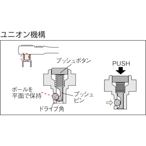 Catalogue number: BR2FS Features: ●Short type. Ideal for working in tight spaces. ●Union mechanism prevents the socket from accidentally falling off. ●Adopts an integrated claw, making the head 20% thinner than our previous model, making it a compact head. ●Uses a 36-tooth gear. Specifications: ●Number of teeth (pieces): 36 ●Drive socket size (mm): convex 6.35 ●Total length (mm): 80 ●Swivel type Material/Finish: ●Special tool steel