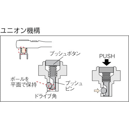 Catalogue number: BR2E Features: ●Standard type with standard handle length. ●Union mechanism prevents accidental socket dropping. ●Uses 36 gears. ●Using an integrated claw, the head thickness has been reduced by 20% compared to our previous model, making it a compact head. Specifications: ●Number of teeth (pieces): 36 ●Drive socket size (mm): 6.35 convex ●Total length (mm): 125 Material/Finish: ●Special tool steel