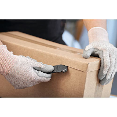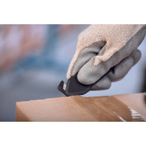 Catalogue number: 145001 Features: ●A very lightweight model at 12g. ●Does not damage contents when opening. ●Unpacking is extremely safe as hands do not come into direct contact with the blade. ●Special plastic is used for high durability. ●Can be disposed of after use, eliminating the risk of injury when replacing the blade. ●A high-quality cutter made in Germany that has acquired the GS mark. Uses: ●For general unpacking work. ●For cutting stretch film, PP bands, packaging tape, cardboard, thick paper, etc. Specifications: ●Total length (mm): 118 ●Blade thickness (mm): 0.5 ●Type: For film Materials/Finish: ●Body: Glass fiber reinforced plastic ●Blade: Alloy tool steel