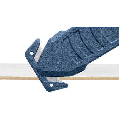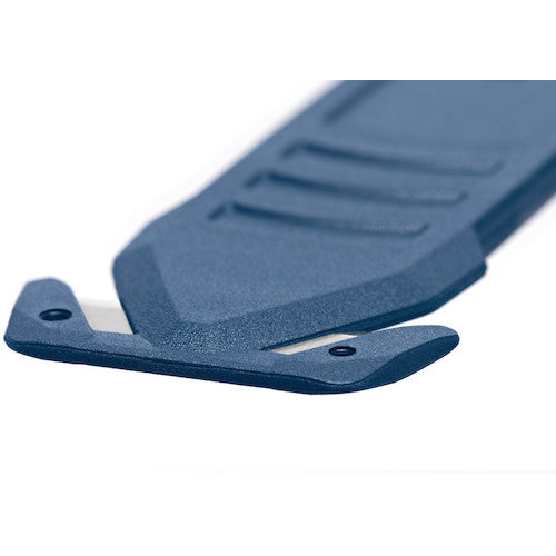 Catalog number: 145007 Features: ●Metal sensor detectable type. ●Ideal for situations where repeated unpacking work is required, such as logistics sites. ●Does not damage contents when unpacking. ●Unpacking work is extremely safe as hands do not come into direct contact with the blade. ●Special plastic is used for high durability. ●Can be disposed of after use, and there is no risk of injury when replacing the blade. ●High-quality cutter made in Germany that has obtained the GS mark. Uses: ●For general unpacking work. ●For cutting stretch film, PP bands, packaging tape, cardboard, thick paper, etc. ●For use in food sites, etc. Specifications: ●Total length (mm): 118 ●Blade thickness (mm): 0.5 ●Type: For film ●Metal sensor detectable. Material/Finish: ●Body: Metal detectable resin ●Blade: Stainless steel