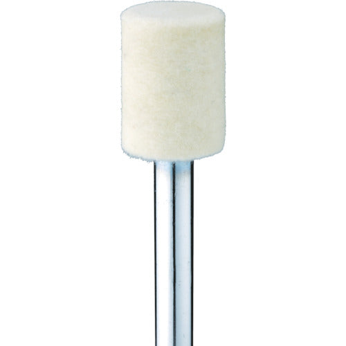 Catalogue number: GA3052 Features: ● A buff made of high-quality, fine wool compressed at a high density. ● Excellent abrasive retention for effective polishing. Specifications: ● Type: Bullet-shaped, soft ● Outer diameter (mm): 25 ● Width (mm): 30 ● Shaft diameter (mm): 6.0 ● Shaft length (mm): 36 ● Maximum operating speed (rpm): 7000 ● Color: White ● Total length (mm): 66.0 ● Compatible materials: Ceramics, glass, tool steel, alloy steel, cemented carbide, cermet, general steel, stainless steel, aluminum, copper