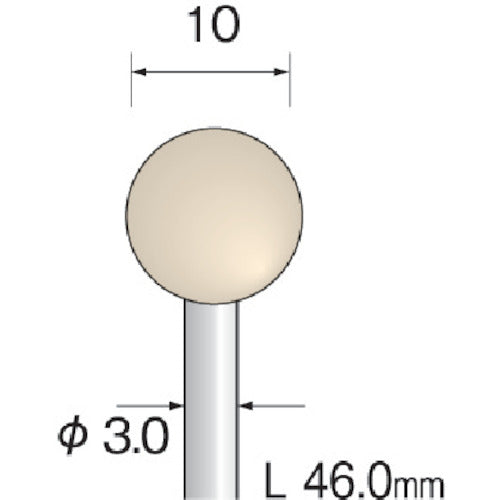 Catalogue number: GA2211 Features: ● A buff made of high-quality, fine wool compressed at a high density. ● Excellent abrasive retention for effective polishing. Specifications: ● Type: Spherical, hard ● Outer diameter (mm): 10 ● Width (mm): 10 ● Shaft diameter (mm): 3.0 ● Shaft length (mm): 36 ● Maximum operating speed (rpm): 30,000 ● Color: White ● Total length (mm): 46.0 ● Compatible materials: Ceramics, glass, tool steel, alloy steel, cemented carbide, cermet, general steel, stainless steel, aluminum, copper