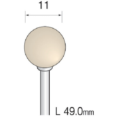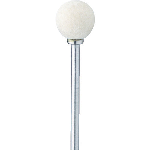Catalogue number: GA1212 Features: ● A buff made of high-quality, fine wool compressed at a high density. ● Excellent abrasive retention for effective polishing. Specifications: ● Type: Spherical, hard ● Outer diameter (mm): 11 ● Width (mm): 11 ● Shaft diameter (mm): 2.34 ● Shaft length (mm): 38 ● Maximum operating speed (rpm): 15000 ● Color: White ● Total length (mm): 49.0 ● Compatible materials: Ceramics, glass, tool steel, alloy steel, cemented carbide, cermet, general steel, stainless steel, aluminum, copper