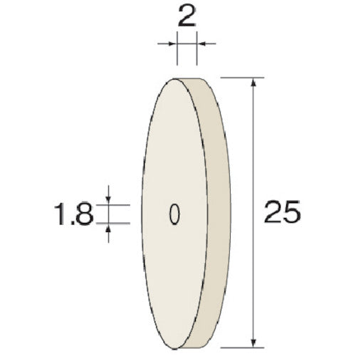 Catalog number: NA4621 Features: ●A separate type felt buff used in combination with a mandrel (shaft). ●The mandrel can be used repeatedly, so there is less waste after use and tool costs can be reduced compared to tools with shafts. Specifications: ●Outer diameter (mm): 25 ●Width (mm): 2 ●Maximum operating speed (rpm): 15000 ●Color: White ●Hole diameter (mm): 1.8 ●Compatible materials: Ceramics, glass, tool steel, alloy steel, resin, rubber, cemented carbide, cermet, general steel, stainless steel, aluminum, copper