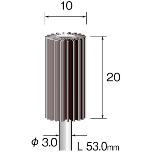 Catalog number: EA1205 Features: ● Good compatibility with the processed material, and has both grinding power and durability. ● Low heat generation during grinding, so the workpiece will not burn. Applications: ● For tool steel, alloy steel, resin, rubber, general steel, stainless steel, aluminum, and copper. Specifications: ● Outer diameter (mm): 10 ● Shaft diameter (mm): 3.0 ● Maximum operating speed (rpm): 25000 ● Tip diameter (φ): 10 ● Grit size (#): 320 ● Width (mm): 20 ● Total length (mm): 53.0 ● Compatible materials: Tool steel, alloy steel, resin, rubber, general steel, stainless steel, aluminum, copper
