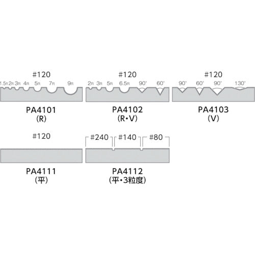 Catalog number: PA4103 Features: ●A lineup of dressers that allows for speedy and easy dressing, towing, and forming of various tools. Specifications: ●Total length (mm): 100 ●Width (mm): 25 ●Thickness (mm): 15 ●Grain size (#): 120 ●Type: V ●Size (mm): 100 x 25 x 15 Caution: ●Always perform work at 15,000 rpm or less.