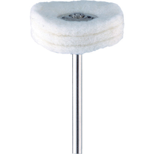 Catalog number: GA4361 Features: ● Buffs with different features are available depending on the purpose of polishing. ● The soft touch causes almost no damage to the workpiece, making it ideal for finish polishing. ● Buffs with different features are available depending on the purpose of polishing. ● The soft touch causes almost no damage to the workpiece, making it ideal for finish polishing. Specifications: ● Type: Felt ● Outer diameter (mm): 14 ● Width (mm): 4 ● Shaft diameter (mm): 2.34 ● Shaft length (mm): 33.5 ● Maximum operating speed (rpm): 5000 ● Color: White ● Total length (mm): 37.5 ● #120 Φ25 x 1.5 10 pieces ● Compatible materials: Ceramics, glass, tool steel, alloy steel, resin, rubber, cemented carbide, cermet, general steel, stainless steel, aluminum, copper