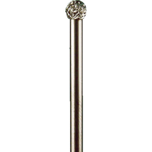 Catalog number: BC2393 Features: ●Excellent cutting performance, wear resistance, and durability. ●A wide range of sizes and cut shapes are available to suit your needs, from heavy cutting to precision cutting. Applications: ●For grinding, polishing, and cutting of various work materials. Specifications: ●Shape: Ball (cross cut) ●Blade diameter (mm): 4.8 ●Blade length (mm): 4.8 ●Shaft diameter (mm): 3.0 ●Shaft length (mm): 38.5 ●Type: Cross cut ●Maximum operating speed (rpm): 30000 ●Total length (mm): 38.5 ●Compatible materials: Tool steel, alloy steel, general steel, stainless steel, aluminum, copper Caution: ●Always wear protective gear such as a hard hat and safety glasses when working. ●The maximum operating speed is a recommended value.