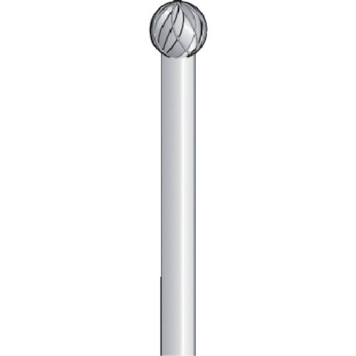 Catalog number: BC2397 Features: ●Excellent cutting performance, wear resistance, and durability. ●A wide variety of sizes and cut shapes are available to suit your needs, from heavy cutting to precision cutting. Specifications: ●Shape: Ball (cross cut) ●Blade diameter (mm): 5.0 ●Blade length (mm): 5.0 ●Shaft diameter (mm): 3.0 ●Shaft length (mm): 38.5 ●Type: Cross cut ●Maximum operating speed (rpm): 30000 ●Total length (mm): 38.5 ●Compatible materials: Tool steel, alloy steel, general steel, stainless steel, aluminum, copper Caution: ●Always wear protective gear such as a hard hat and safety glasses when working. ●The maximum operating speed is a recommended value.