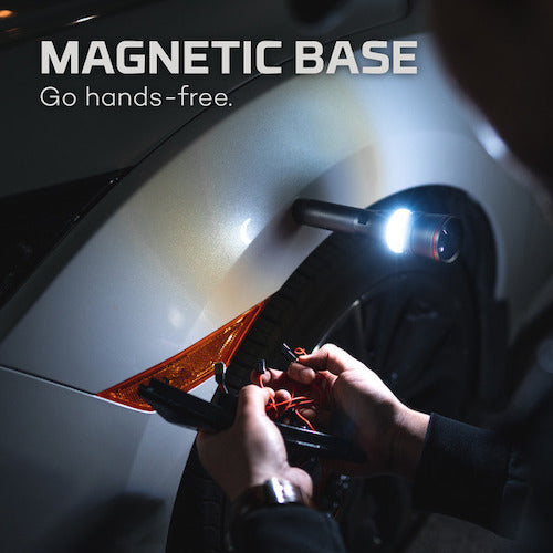 Catalog number: NEB-WLT-0023-G Features: ●Magnetic base allows hands-free work. ●Maximum 30 hours of use. ●Light section can be bent 90 degrees for all kinds of work. Specifications: ●Brightness (lm): 300 (strong) / 30 (weak / strong red) / 3 (weak red) ●Outer diameter (mm): 40.6 ●Total length (mm): 152.4 ●Power source (V): Dedicated rechargeable battery (included) ●Charging time: 3 hours ●Protection rating: IPX4 ●Width (mm): 130 ●Depth (mm): 35 ●Height (mm): 315 ●Maximum lighting time: 30 hours ●Lighting specifications 300lm (high), 30lm (low) ●Red light 30lm (high), 3lm (low) Material/Finish: ●Aluminum Set contents/Accessories: ●Charging cable