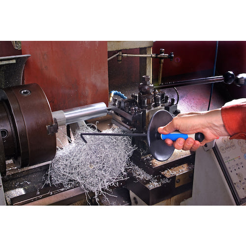 Catalogue number: SP2500 Features: ● A cutting chip cleaning tool that has never been seen before. ● The handle has a Φ130mm protective guard. Uses: ● For cleaning metal cutting chips generated during cutting processes such as lathes. Specifications: ● Overall length (mm): 430 ● Noga grip handle ● Φ130mm protective guard Material/Finish: ● Body: Blackened steel ● Handle: Noga grip handle ● Protective guard: Plastic