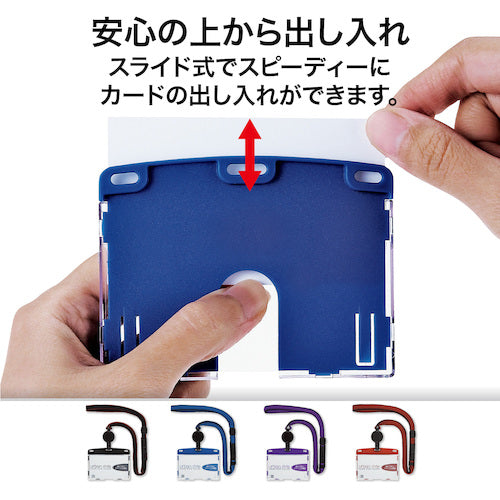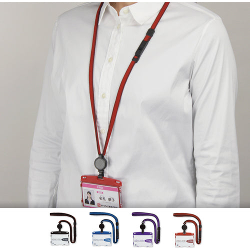 Catalog number: NU-4P-BU Features: ● Equipped with a whistle function for peace of mind. ● Cards can be safely inserted and removed from the top. ● Double stitching on the strap gives it a casual, stylish look. ● Retractable reel clip convenient for reading contactless ID cards. ● Strong clip holds securely in your pocket. Uses: ● For wearing identification cards in offices, factories, etc. Specifications: ●Color: Blue ●Type: Hard ●Inner paper size (mm) width: 90 ●Inner paper size (mm) height: 55 ●Length (mm): 565 ●Width (mm): 97 ●Thickness (mm): 15 ●Inner paper size (mm) width x height: 90 x 55 (horizontal business card) ●Strap dimensions: length approx. 900 x width approx. 10 mm ●Reel: approx. 60 cm (when extended) ●Safety device, length adjustment, whistle included ●Hard type ●GPN Eco Product Net listed product Material/Finish: ●Case: Recycled PC/Recycled PP ●String: Recycled PET ●Whistle: Recycled ABS