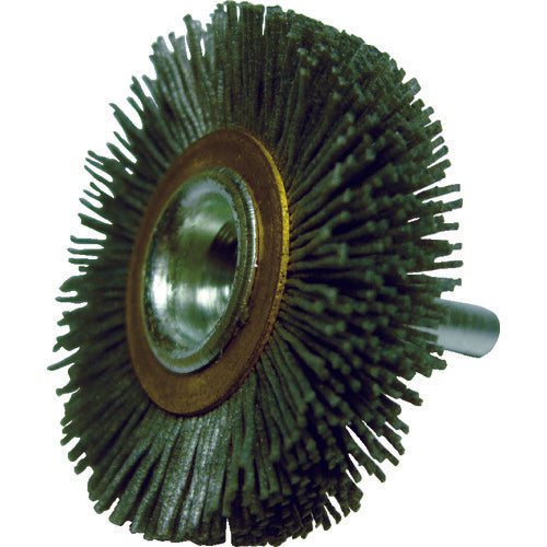 Catalog number: 11449 Features: ● A material with silicon carbide abrasive grains embedded in nylon filament. ● Low absorption rate, so wet polishing can be performed as well as dry polishing. Applications: ● Deburring, surface treatment, micro deburring of hydraulic parts, etc. Specifications: ● Hair material: Nylon filament ● Outer diameter (mm): 50 ● Hair length (mm): 11 ● Shaft length (mm): 30 ● Shaft diameter (mm): 6 ● Maximum operating speed (rpm): 15000 ● Metal fitting diameter (mm): 27 ● Metal fitting width (mm): 7 ● Grit size (#): 120 ● Tip width (mm): 10 Material / Finish: ● Shaft: Steel Caution: ● Please use protective glasses and dust mask when working.