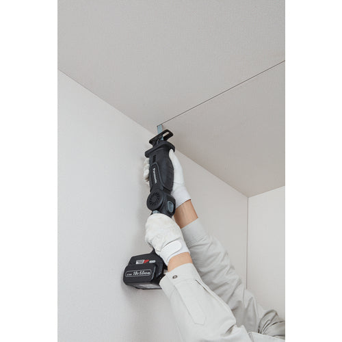Catalog number: EZ47A1LJ2F-B Features: *The first small rechargeable reciprocating saw, this one is foldable, allowing you to work comfortably in tight spaces. *Sparks are less likely to occur, making it safe. *Blades can be replaced with one touch without tools. *Comes with an LED for use in dark places. Applications: *When removing or renovating existing piping. *When opening plywood. *When opening edges of ceiling boards. *When cutting underfloor heating. Specifications: ●Cutting capacity (mm) wood: 50 ●Stroke count (min-1): 0-3000 ●Stroke (mm): 14 ●Cutting capacity (mm) metal pipe: 50 ●Installable blade thickness: 0.9-1.6mm ●Handle angle: 4 positions ●Total length: 345mm when bent to maximum, 455mm when not bent ●Capacity (approximate, when fully charged) 14.4V 5.0Ah battery, using genuine blade: Metalwork cutting (E25 electrical conduit) approx. 140 pieces, woodwork cutting (2x4 lumber. 38mm x 89mm) approx. 140 pieces ●Vibration 3-axis composite value: 14.3m/S2 Set contents/accessories: ●Plastic case (EZ9675) ●Quick charger (EZ0L81) ●Battery pack (EZ9L48) x 2 ●Metalworking blade (100mm) x 1 ●Hexagonal wrench (opposite side 3mm) x 1