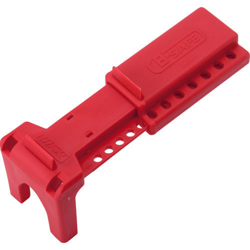 Catalog number: PSL-BV1 Features: ● Locks out the ball valve handle so that it cannot be turned. ● Can be used with handles up to 190 mm from the tip of the valve. Applications: ● Locks out the ball valve handle to prevent malfunction. Specifications: ● Color: Red ● Suitable handle size (mm): 24 x 190.5 ● Usable key space (A) (mm): 25.4 or more ● Attachable padlock shackle diameter: Φ7.6 mm or less ● Requires 25.4 mm or more space when locked ● Made in an ISO9001 certified factory ● Made in an ISO14001 certified factory Material/Finish: ● Polypropylene (PP) Caution: ● Use an insert for narrow handles.