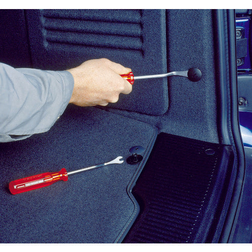 Catalog number: 671CN Features: ●Ideal for removing interior trim from cars. ●Can be used without damaging the interior of the car or the clip itself. ●Comes with a backing. Specifications: ●Set contents (pieces): 2 ●Swiss Tools 671CN Clip Clamp Tool Set Material/Finish: ●Shaft: Special alloy steel Set contents/Accessories: ●Clip clamp tool (671-6・10)