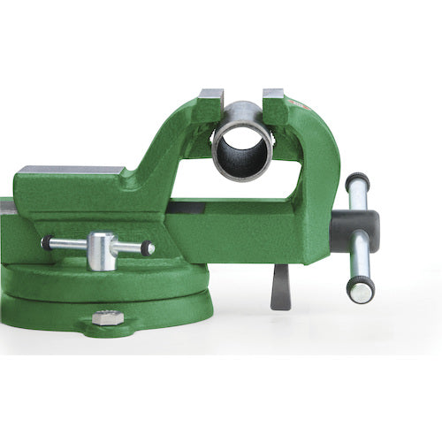 Catalogue number: 26648 Features: ●Long life and structure that allows quick clamping and unclamping. ●Pulling the trigger opens the jaws, allowing the workpiece to be inserted and removed. ●Clamping and unclamping of pipes can be performed with just one slight turn of the handle. ●The base can rotate 360°, allowing flexible positioning of the workpiece. Specifications: ●Total length (mm): 355 ●Width (mm): 155 ●Height (mm): 165 ●Jaw width (mm): 125 ●Jaw opening (mm): 155 ●Jaw depth (mm): 80 ●Mounting hole dimensions (mm): 15.23 ●Clamping pressure (kN): 30 ●Type: Lead vice with rotating table ●Mounting dimensions (mm): 115 ●Model: XF-45 ●Quick action forging vice XF-45 Material/Finish: ●Body: Forged steel ●Shaft: Iron