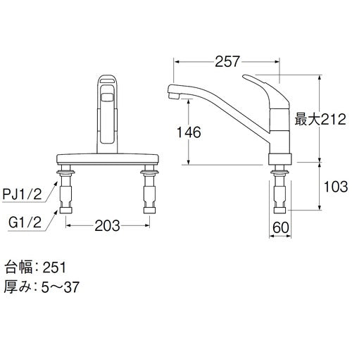Catalog number: K676V-13 Specifications: ●Nominal diameter (mm): 13 ●Type: For general use ●Mounting hole diameter (mm): 203 ●Base width (mm): 251 ●Water outlet rotates 115° Material/Finish: ●Brass