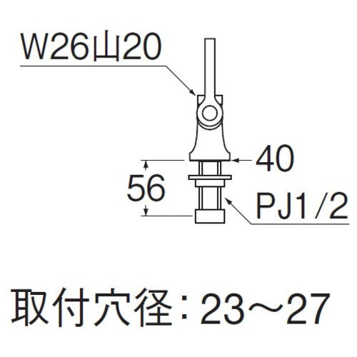 Catalogue number: A5310F-13 Features: ●You can purchase and use a water outlet pipe that suits your needs separately. (W26, pitch 20) ●Easy to use even in kitchens where the unit is used frequently. Specifications: ●Nominal diameter (mm): 13 (PJ1/2) ●Mounting hole diameter (mm): 22-27 ●Double thread specifications. Mounting hole diameter: Compatible with 22-27 mm. ●Type that does not come with a water outlet pipe. ●Mounting hole diameter 23-27 mm. Material/Finish: ●Bronze