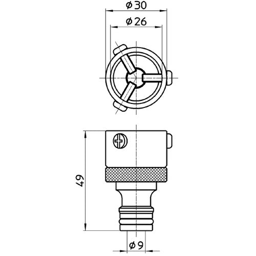 Catalogue number: PL60-10 Features: ●Can be attached to faucets with a spout diameter of 15 to 18 mm. ●Hose can be attached and detached with one touch. Specifications: ●Compatible pipe outer diameter (mm): 15 to 18 ●Height (mm): 49 ●A (mm): 49 ●B (mm): 30 ●Connection is PL60-50 ●Compatible faucet outer diameter (mm): 15 to 18 ●Screw fastening Material/Finish: ●Brass, stainless steel