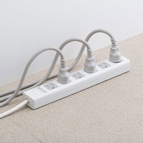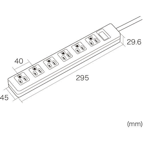 Catalog number: TAP-SH3650MG3P Features: ● Comes with a dust prevention shutter to prevent dust from entering. ● Comes with a magnet on the back, so it can be temporarily fixed to a steel desk, etc. ● The plug is made of urea resin, making it heat resistant. ● The plug is a 3P plug, and the base of the plug has an insulating cap that is effective in preventing tracking fires. ● Comes in simple packaging that produces less waste and is environmentally friendly. Applications: ● For power supplies that prevent dust. Specifications: Number of outlets: 6 Color: Outlet/gray, Cable/white Width (mm): 295 Depth (mm): 45 Height (mm): 29.6 Product name: Shutter tap Rated voltage (V): 125 (up to 1500W) Rated current (A): 15 (up to 1500W) Plug shape: 3P (plug with insulating cap) Outlet shape: 3P, 6 outlets (with shutter) Cable length (m): 5 Rated capacity: 15A, 125V (up to 1500W) Outlets: 3P, 6 outlets (with shutter) Cord: VCTF 1.8SQ (square) x 2 cores, 0.75SQ (square) x 1 core (earth) Finished external dimensions: Approx. diameter 8.5mm Outlet spacing: 40mm