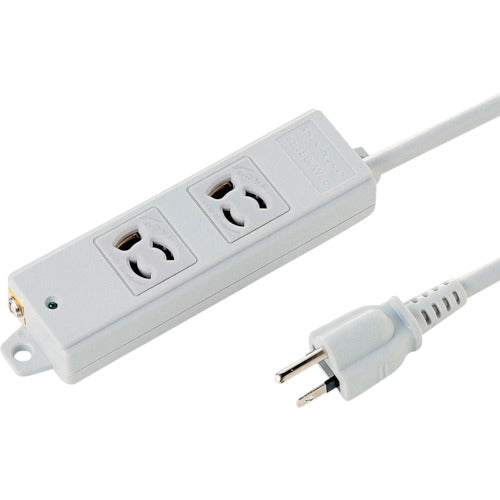 Catalog number: TAP-KS2-1 Features: ●Tap with 2 outlets (3P anti-pullout), VCTF cord specification, 3P plug (with insulating cap). ●Equipped with a power indicator lamp to check the power status. ●A magnet is attached to the back, so it can be temporarily fixed to a steel desk, etc. ●Convenient and easy to maintain. ●The socket part has a double structure using urea resin that is resistant to heat and impact. ●3P (with grounding) plug with insulating cap that is effective in preventing tracking fires. ●Uses simple plastic bag packaging that reduces waste and is environmentally friendly. Specifications: Color: Gray; Rated voltage (V): 125 (up to 1500W total); Rated current (A): 15 (up to 1500W total); Plug shape: 3P (with insulating cap); Outlet shape: 3P (anti-pullout type) - 2 outlets; Cable length (m): 1; Socket pitch (mm): 40; Temporary fixing hole spacing (mm): 147; Cord: VCTF 2.0 square (SQ) x 2 cores, 0.75 square (SQ) x 1 core (earth); Finished external dimensions (mm): Approx. diameter 8.5; Cord type: Vinyl cabtyre round cord (VCTF)