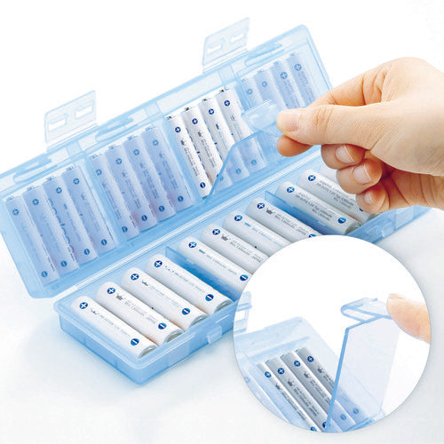 Catalog number: DG-BT6BL Features: ●A battery case that can store both AA and AAA batteries. ●12 AA batteries and 16 AAA batteries can be stored. ●Batteries can be stored in groups of four for easy management. ●Designed to prevent the case from shifting when stacked. ●Large capacity type ideal for organizing and storing rechargeable batteries and unused batteries. ●Made of lightweight, shatter-resistant PP material. Specifications: ●Width (mm): 205 ●Depth (mm): 66 ●Height (mm): 33 ●Color: Blue ●Size (mm): W205 x D66 x H33 ●Weight (g): Approx. 98 ●Material: PP ●Storage capacity (pcs): 12 (AA batteries), 16 (AAA batteries)