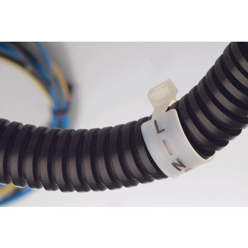 Catalog number: SEL.2.223T Features: ●You can sort and distinguish bundled cables. ●You can write letters vertically. Uses: ●Identification of bundled electric wires and cables. Specifications: ●Color: White ●Width (mm): 4.8 ●Length (mm): 200 ●Maximum bundle diameter (mm): 50 ●Tensile strength (N): 280 ●Thickness (mm): 1.3 ●Minimum bundle diameter (mm): 16 ●Writing space vertical x horizontal: 13 x 35 mm ●Usage temperature range: -15 to 75 ° C Material / Finish: ●Nylon Caution: ●Please use indoors. ●Nylon products become easily broken when they dry and the moisture content decreases, so please use it as soon as possible after opening. ●If you store it after opening, please seal the bag. ●Nylon products tend to harden in the cold season, so please return it to room temperature before using it.